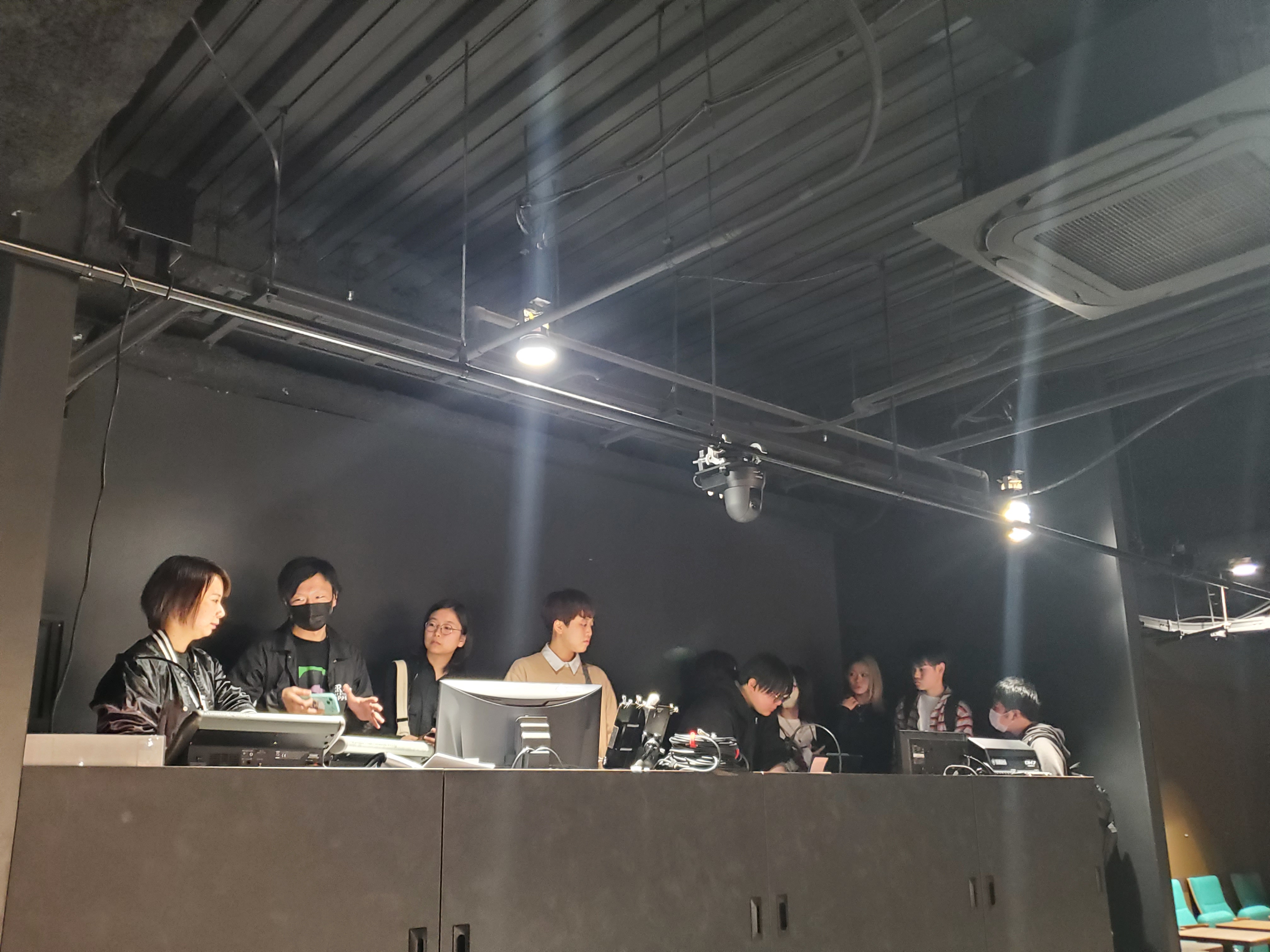 道頓堀シアターでは、劇場スタッフ、YBT技術スタッフ(照明、映像、音響)による機材説明を行いました。